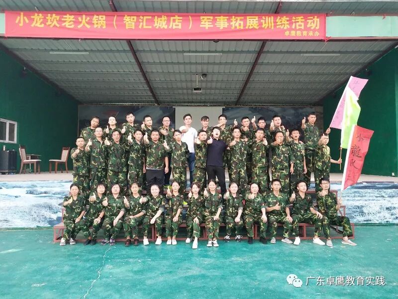 7月27日-28日,小龙坎老火锅委托卓鹰教育实践基地为全体员工开展军训拓展培训活动。